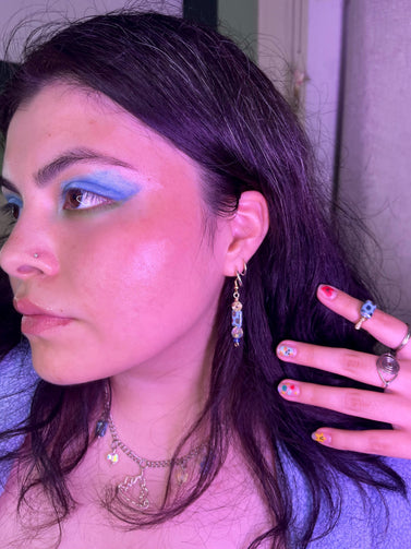 Bathe in the feeling of nostalgia as you enter a party scene in 2004. Wearing a sparkly purple top paired with the 2004 Party Earrings, you dance into the night like nothing matters.