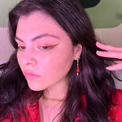 Made with glass and metallic gold beads, Artistic wire. Earring hooks made with .925 Silver (hypoallergenic).