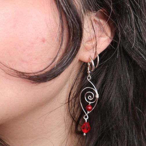 Made with glass bicone and round beads, Artistic wire. Earring hooks made with .925 silver (hypoallergenic).