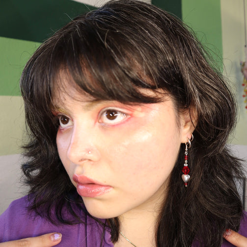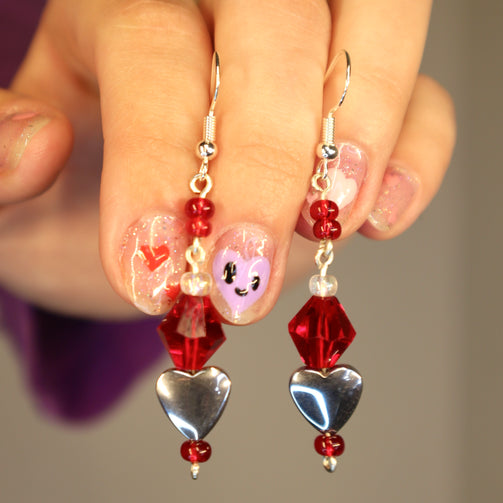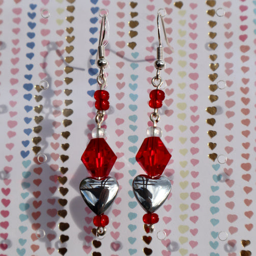 Made with red glass beads and chrome beads. Earring hooks made with .925 Silver (hypoallergenic).