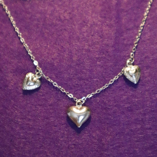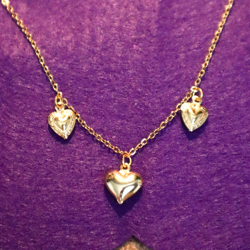 Made with stainless steel and gold-plated chain, hardware and heart charms.