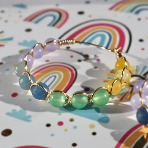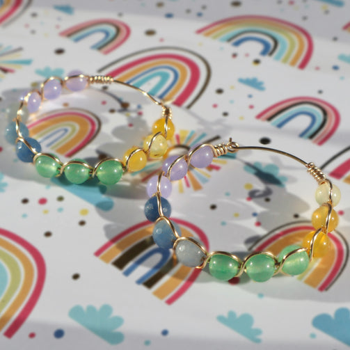 Kaleidoscope earrings were made with various colors of aventurine stone, which ground you back into mental clarity.