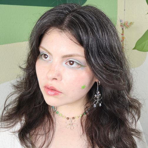 Made with glass beads and Artistic Wire. Earring hooks made with .925 Sterling Silver (hypoallergenic).