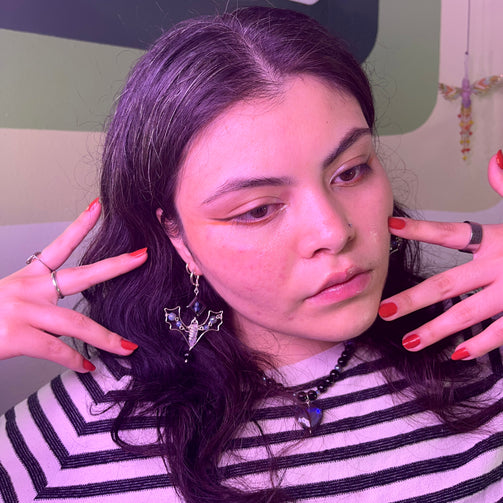 But in the midst of the darkest night of the year, we witness the most anticipated. While the bats make their way to greet the humans on Halloween night, they make a quick stop. Shifting into jewelry, they decorate the ears of many.