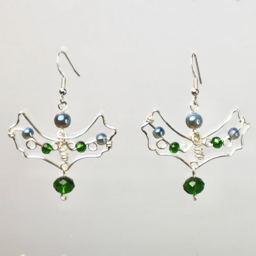 Made with glass beads, Artistic wire. Earring hooks made with .925 silver.