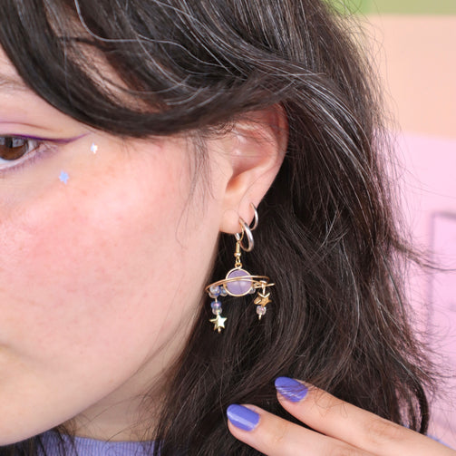 Wear the tiny version of their planet in the form of jewelry with the Peopl of Saturn earrings.