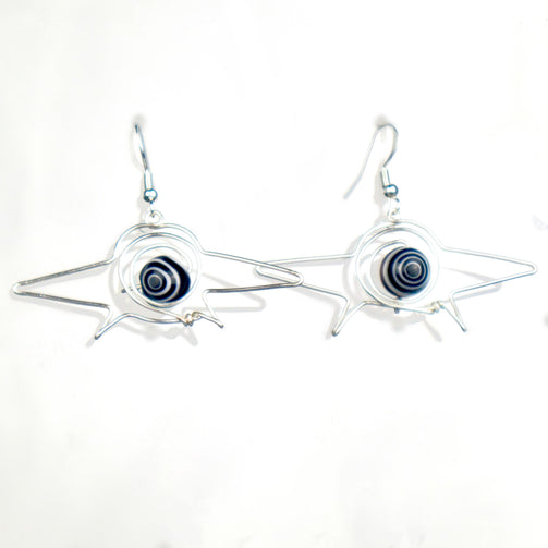 Made with glass swirly beads, Artistic wire. Earring hooks made with .925 silver (hypoallergenic).